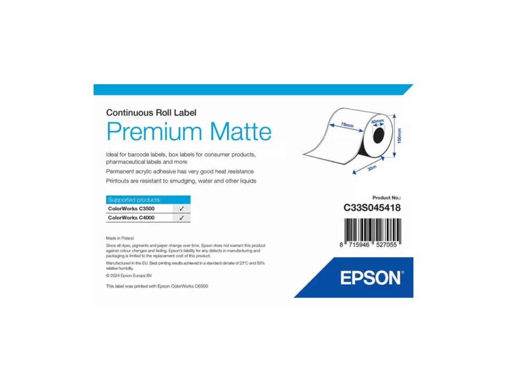 Epson prémiové matné etikety - role 76mm x 35m vhodný pro tisk na tiskárnách C3400/C3500.